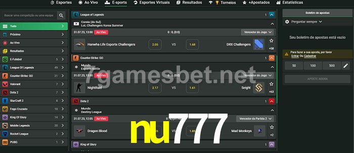 A aposta nu777 oferece aos jogadores a experiência mais conveniente de apostas em eSports!